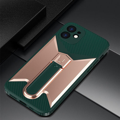 Metal Kickstand Shockproof Case For iPhone Soft TPU Hard PC Straight Edge Back Cover Anti-scratch Fundas